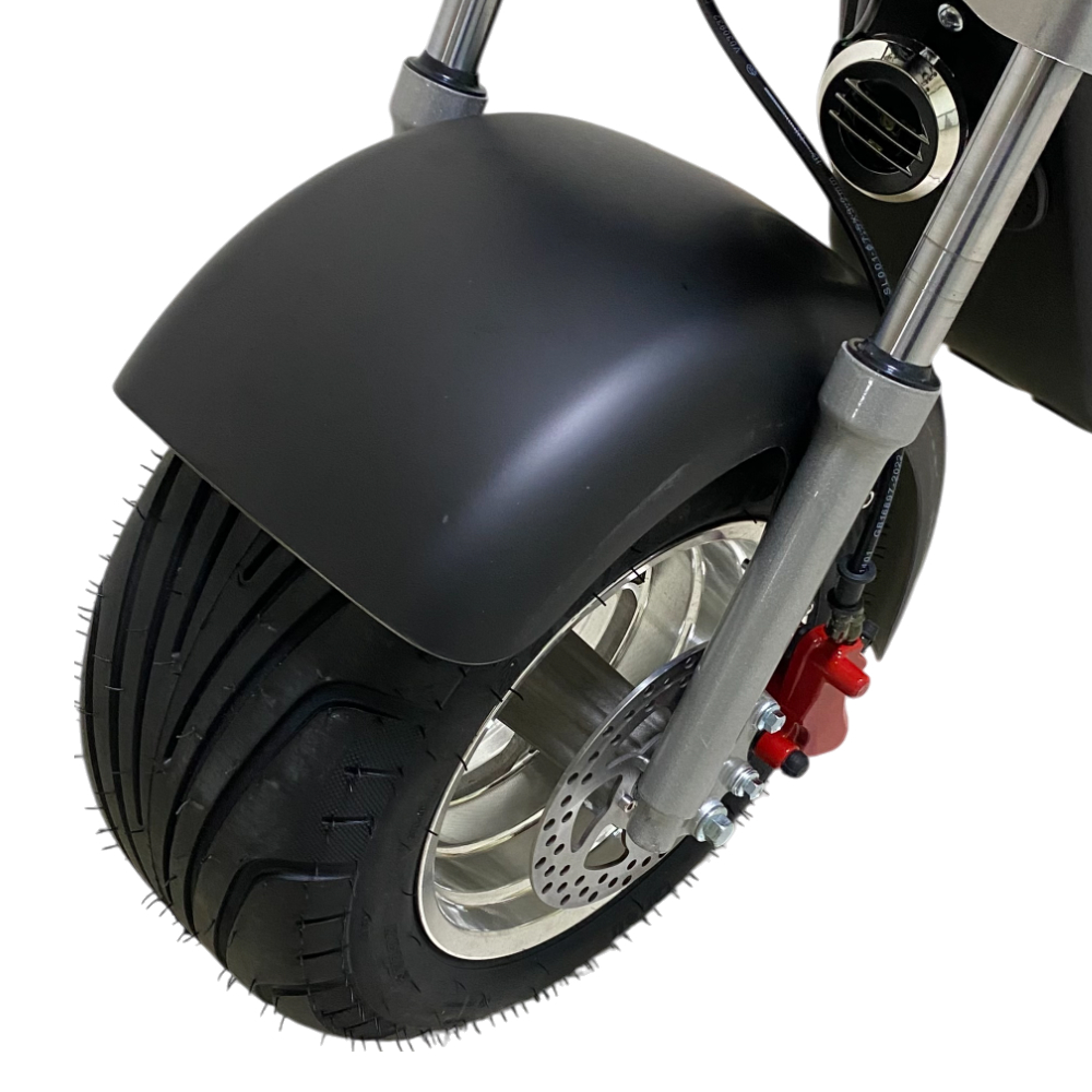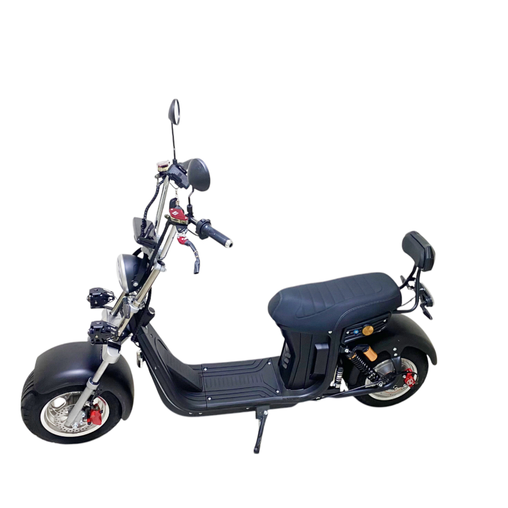 Электроскутер Citycoco GT E30 в черном матовом цвете — это универсальное средство передвижения. С мощностью 3000W и задним приводом, он обеспечивает отличную динамику и маневренность на городских улицах. Благодаря двухколесной конструкции и надувным колесам диаметром 18 дюймов, скутер уверенно держится на дороге, что делает его идеальным для поездок по различным покрытиям.Съемный аккумулятор с напряжением 60V позволяет преодолевать расстояние до 50 км на одном заряде, что делает его идеальным вариантом для ежедневных поездок. Время зарядки составляет всего 5 часов, что обеспечивает быструю готовность к новым приключениям. Кроме того, в конструкции предусмотрено дополнительное место под аккумулятор, что увеличивает возможности автономной работы.Скутер весит 75 кг и может выдерживать максимальную нагрузку до 200 кг, что делает его подходящим для различных пользователей. Дисковые гидравлические тормоза обеспечивают надежную остановку, а большое мягкое сиденье и амортизаторы гарантируют комфорт даже при длительных поездках.Дополнительно, Citycoco GT E30 оснащен бортовым компьютером, зеркалами, звуковым сигналом, фарой и поворотниками, что повышает безопасность и удобство. Большая дека под ноги и прочная конструкция делают поездки еще более приятными.Электроскутер Citycoco GT E30 — это идеальное сочетание стиля, мощности и комфорта для тех, кто ценит удобство и скорость в городской среде.