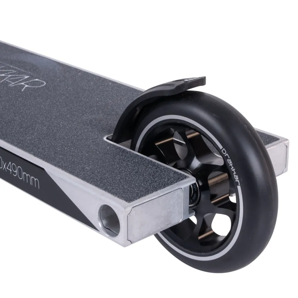 Колеса оснащены алюминиевыми дисками диаметром 110 мм, дополненные покрышками из полиуретана шириной 24 мм и твердостью 88A, что гарантирует превосходное сцепление с поверхностью и долговечность при активном использовании. Высококлассные подшипники ABEC 9 обеспечивают плавное вращение колес, способствуя быстрому разгону и точному контролю над самокатом в условиях стрит-катания. Tech Team Drakkar Street – это воплощение передовых технологий и эстетики, созданное для настоящих мастеров трюкового спорта, готовых покорять новые горизонты.