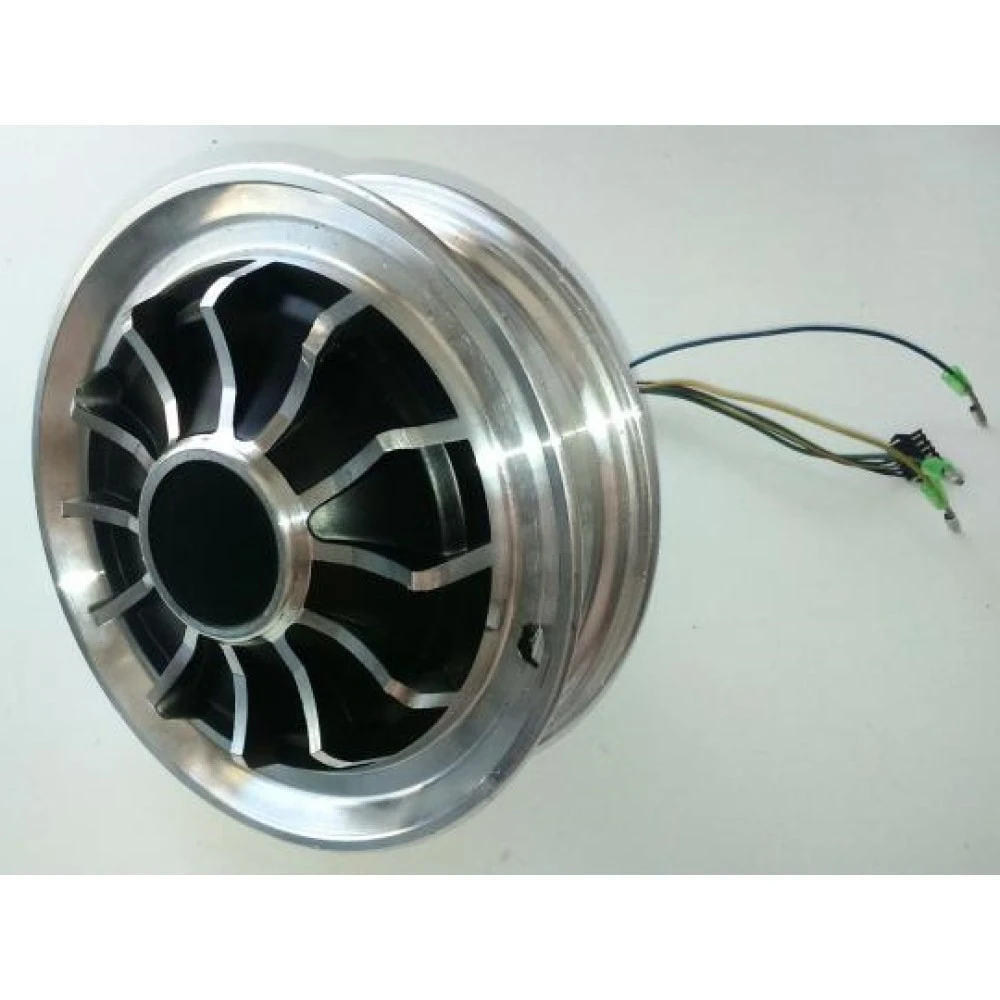 Данное мотор-колесо идет без покрышки и шины. Его конструкция достаточно надежная, с высокопрочного материала. Мощность двигателя 350 Вт. Декоративная внешняя сторона делает ее дизайн узнаваемым и при движении выглядит очень эффектно. С внутренней стороны идут провода с разъемами для подключения мотор-колеса к гироскутеру.